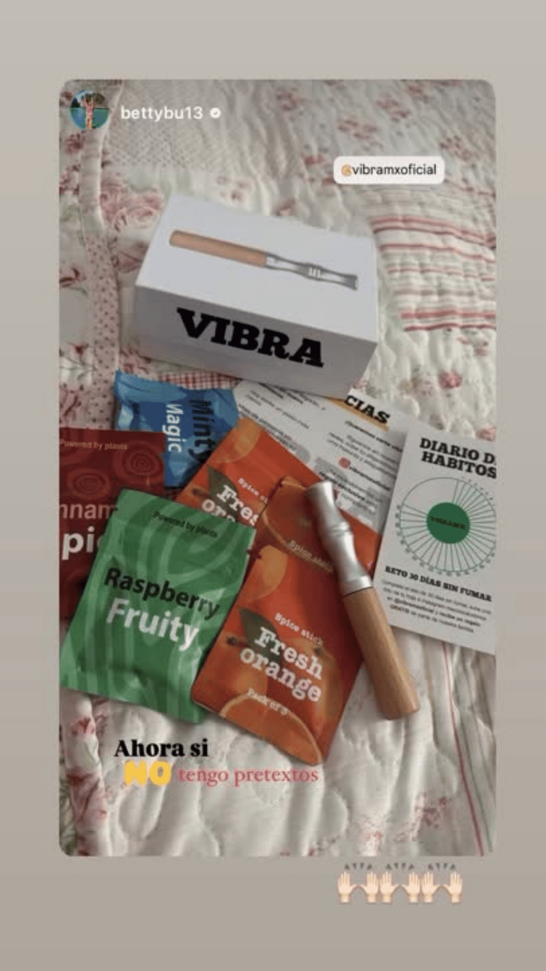 Cada recambio de sabor VIBRA dura aproximadamente entre 2 y 3 díascon un uso frecuente.